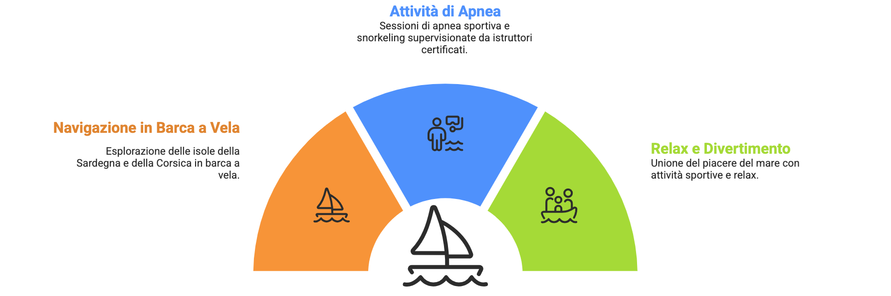 Una settimana di apnea in barca a vela pensata per unire il piacere del mare al relax e divertimento di una vacanza sportiva. La partecipazione prevede particolare attenzione alle attività di apnea sportiva, con sessioni su cavo supervisionate da un istruttore di apnea certificato ESA e SSI, e sessioni ricreative per lo snorkeling lungo le coste.